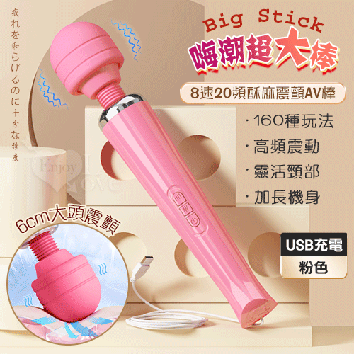Big Stick 嗨潮超大棒 ‧ 8x20酥麻震顫AV女優大滿足潮吹按摩棒﹝6CM大頭+靈活頸部+USB充電﹞粉