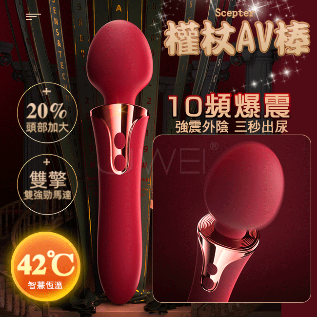 GALAKU.權杖AV震動棒 前震後插+3段震速x7頻震動+恆能加溫-紅色