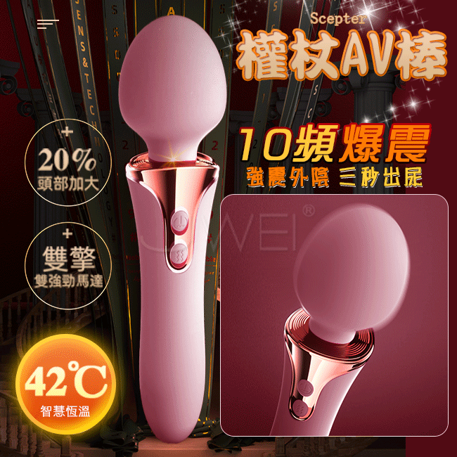 GALAKU.權杖AV震動棒 前震後插+3段震速x7頻震動+恆能加溫-粉色