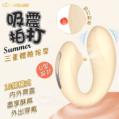 誘魅UNIMAT ‧ Summer 夏 U型10X10X10頻調控~拍打吮吸震動三重體驗按摩器-米黄