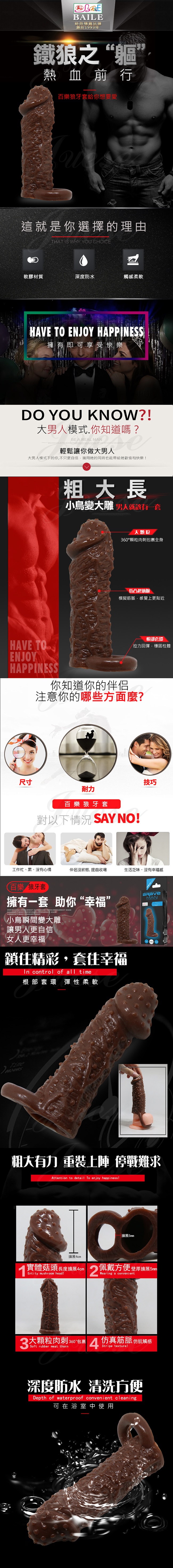 BAILE-BRAVE MAN 陰莖套蛋老二加長套-棕色D