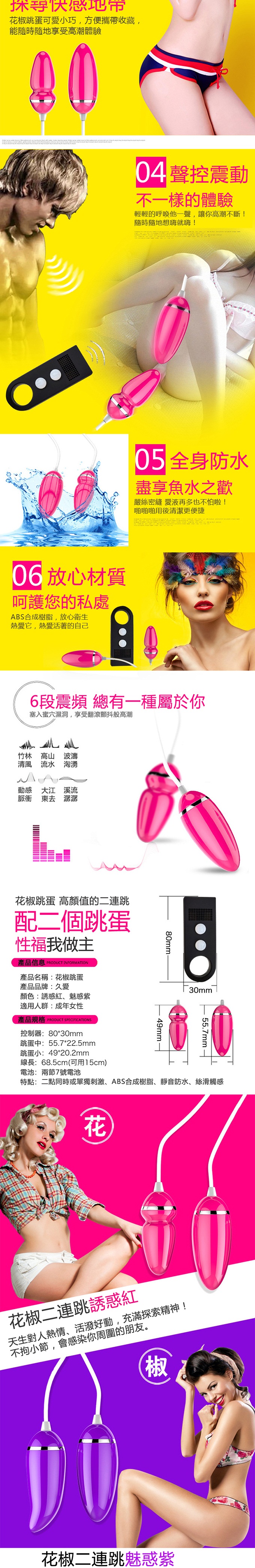 | 花椒跳蛋.聲控變頻花椒造型亮彩雙跳蛋 (紅)