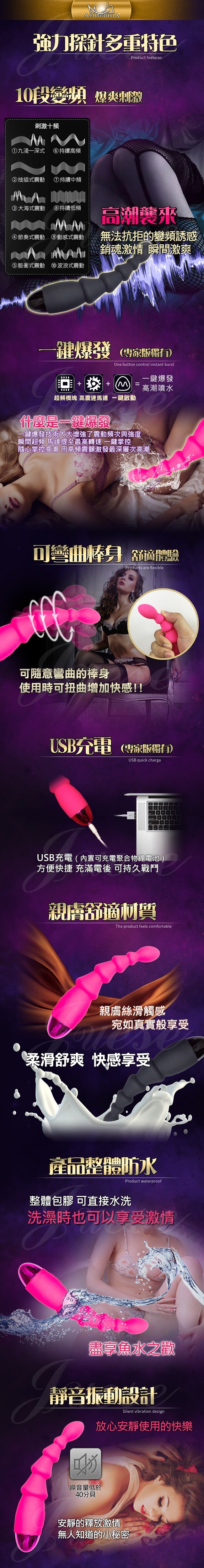 APHRODISIA-滑珠 強力探針10段變頻震動棒-黑-電池版