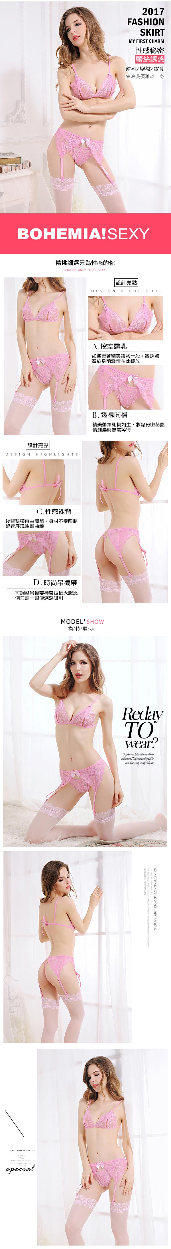 ◇◆浪漫月夜‧狂騷情趣吊帶襪四件組(粉)◆◇