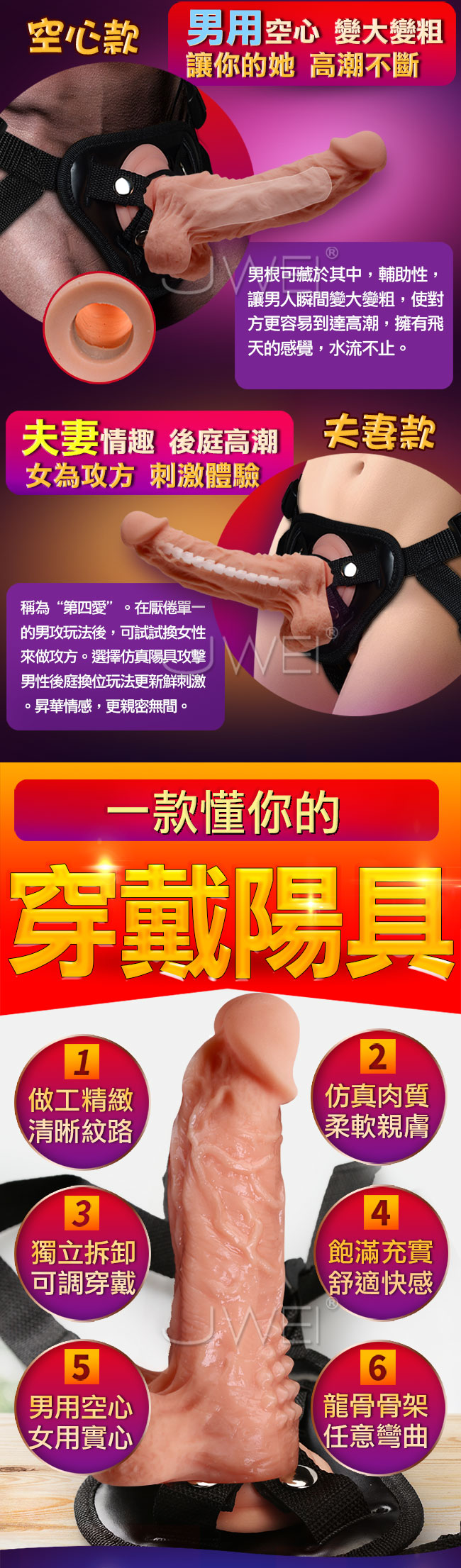 戰魂穿戴褲讓您從此回復男人雄風,在另一半面前更有自信與自尊,擬真的雙層材質肉感大老二內層中空圓孔內部,超擬真外型與前端實心龜頭,讓您猶如披上鎧甲增粗加大輕易滿足另一半不再半路喊卡!!卡扣設計的腰帶方便穿脫,把大老二穿戴在身上,瞬間變身成大男根讓您帶著它一起衝鋒陷陣。還有多種玩法等您來發掘喔~~~