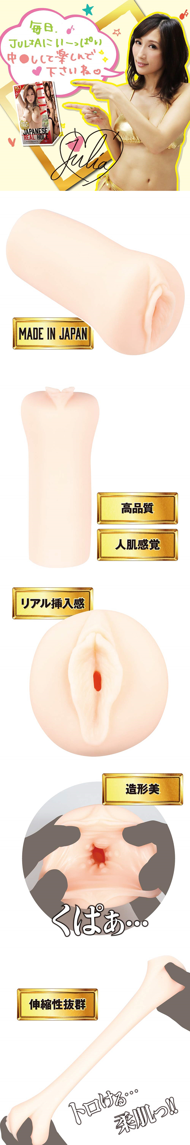 女優系オナホの最高峰『JAPANESE REAL HOLE』に神乳スケベBODY JULIAが登場♪ JULIAのぬくもり名器をナマで奥まで存分に堪能!何度も何度も・・・快楽☆絶頂!!枯れ果てるまでJULIAに搾り取られます!永遠にひとり占め出来るアナタだけのJULIAとリアルで濃密なハメハメ極上プレイをお楽しみください。丁寧につくったMADE IN JAPAN