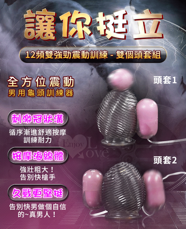 龍捲風‧12段變頻雙強勁震動全方位龜頭訓練器 - 雙個頭套組﹝A﹞