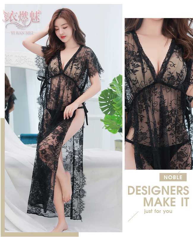 ►您現在的位置:首頁>妙麗傾心!輕透蕾絲兩側開襟綁帶長睡裙﹝黑﹞