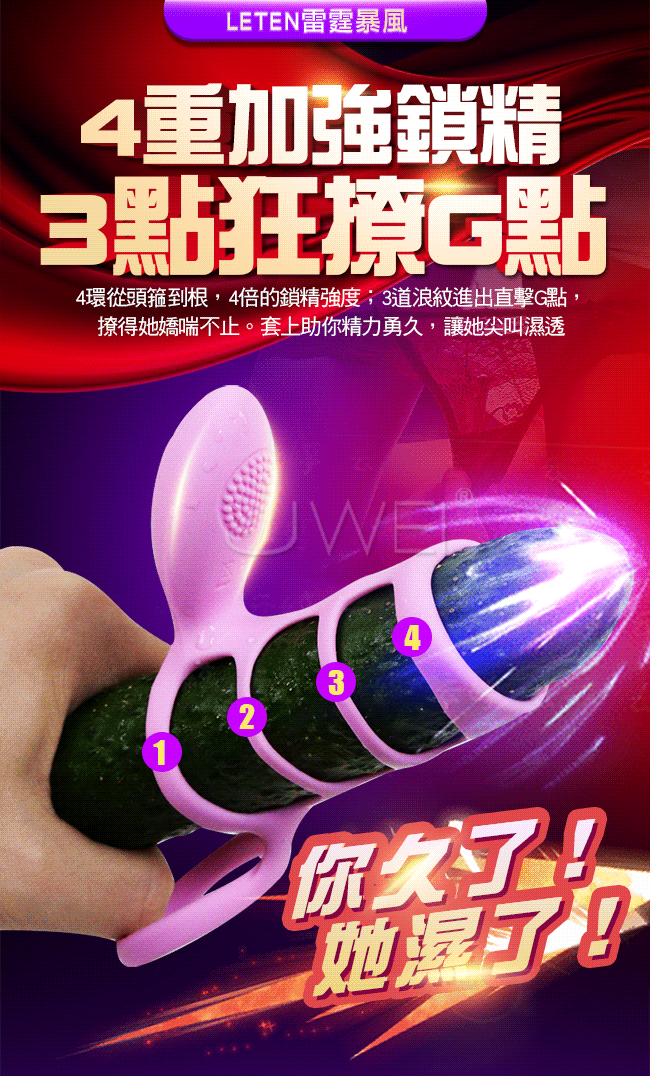 | Leten.加強型延時撩蒂震動鎖精套環-G點挑逗