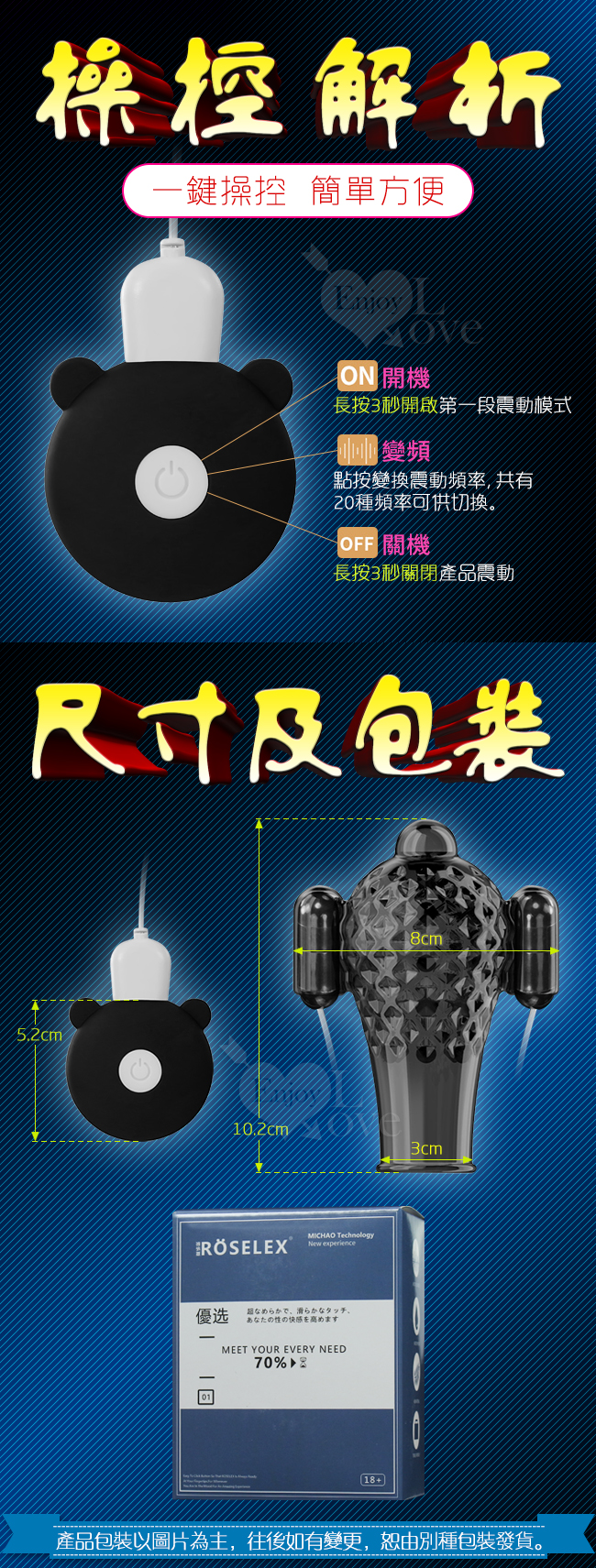 使用龜頭物理訓練原理搭配20段高頻震顫雙馬達震動360度對龜頭進行疏通按摩,從而達到長時目的。