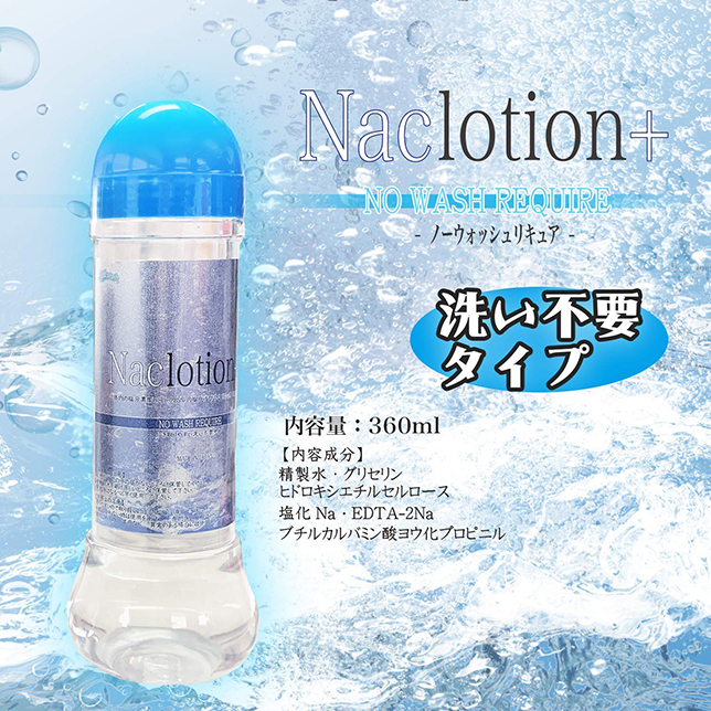 ナックローションは純国産の塩化ナトリウムを、体液と同じ0.85%の濃度に配合したことで、より身体に馴染みやすく、ナチュラルな使い心地を実現しました。ノーウォッシュリキュアは使用後のふき取りをしやすい配合を行っている為、洗浄にも時間が掛かりません。