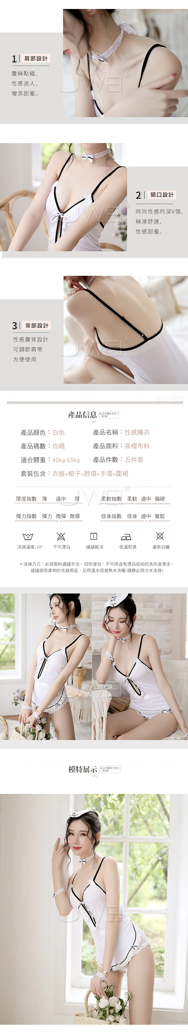 | 貼心俏佳人.V領蕾絲女僕套裝五件組