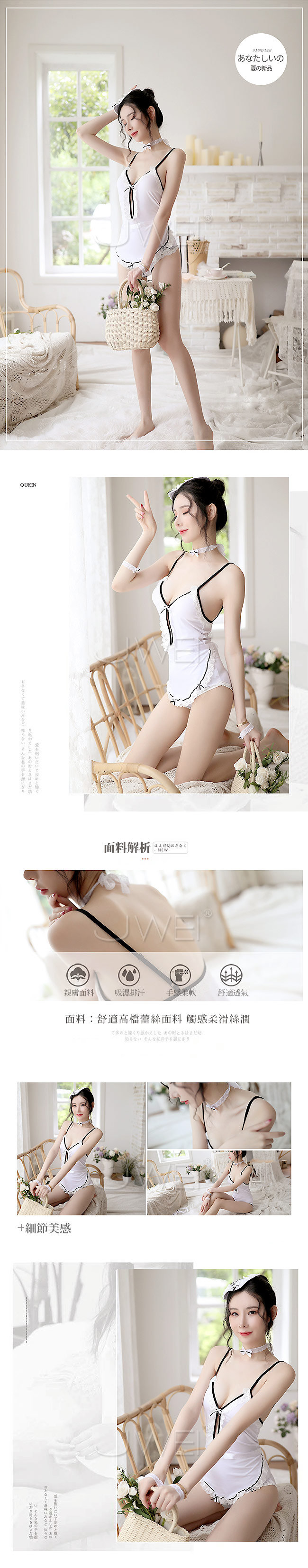 | 熱切思念.鏤空旗袍死庫水性感連身衣(白色)