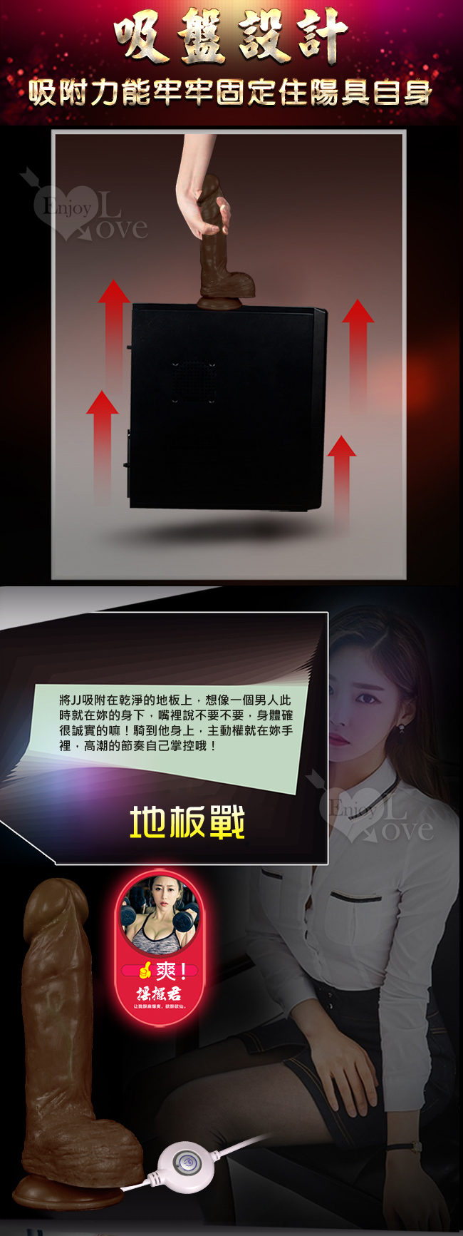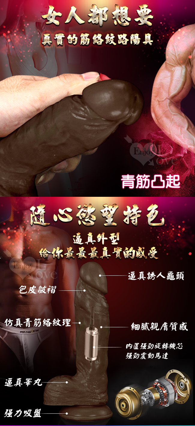 鐵血雄師 - 逼真老二按摩棒擁有逼真的外表,採用柔軟矽膠讓您感受猶如真人般的體驗。共10種段速旋轉變頻強勁震力任您選擇,360度狂攪蜜穴瞬間達到高潮欲罷不能。