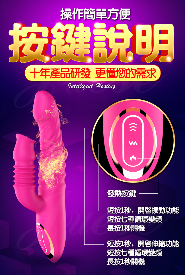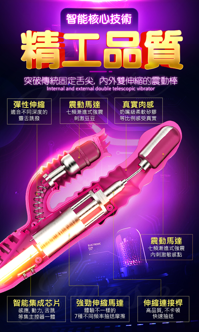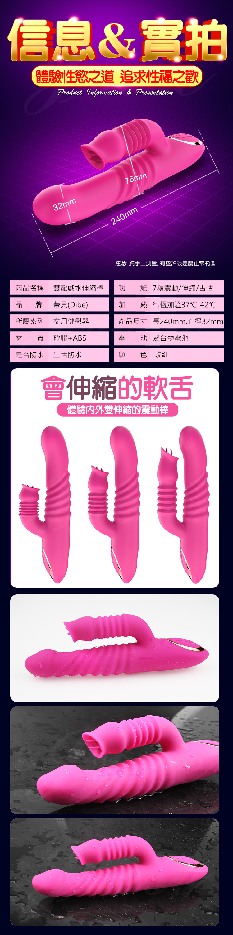 Dibe-雙龍戲水 7段變頻雙伸縮靈舌震動加溫矽膠按摩棒