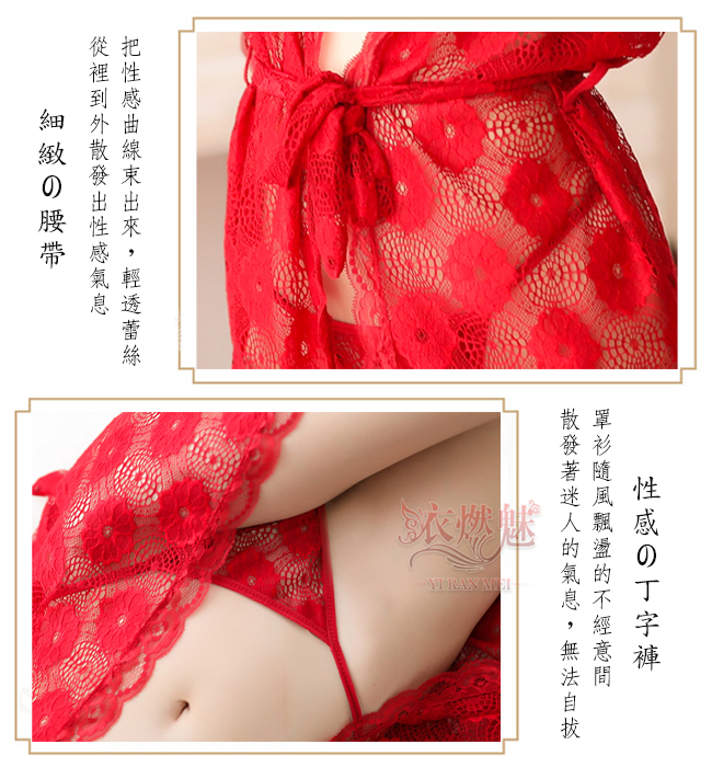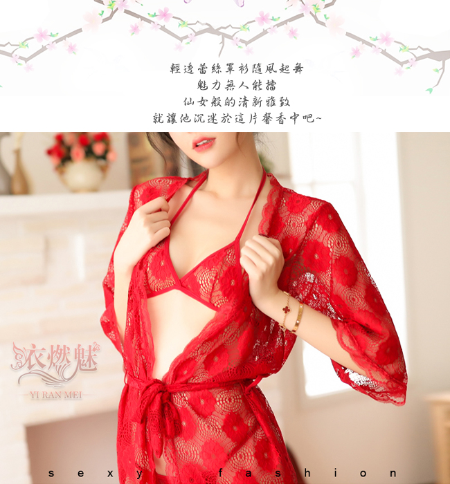►您現在的位置:首頁>情趣睡衣!輕透花朵蕾絲罩衫內搭三點式浴袍組﹝紅﹞