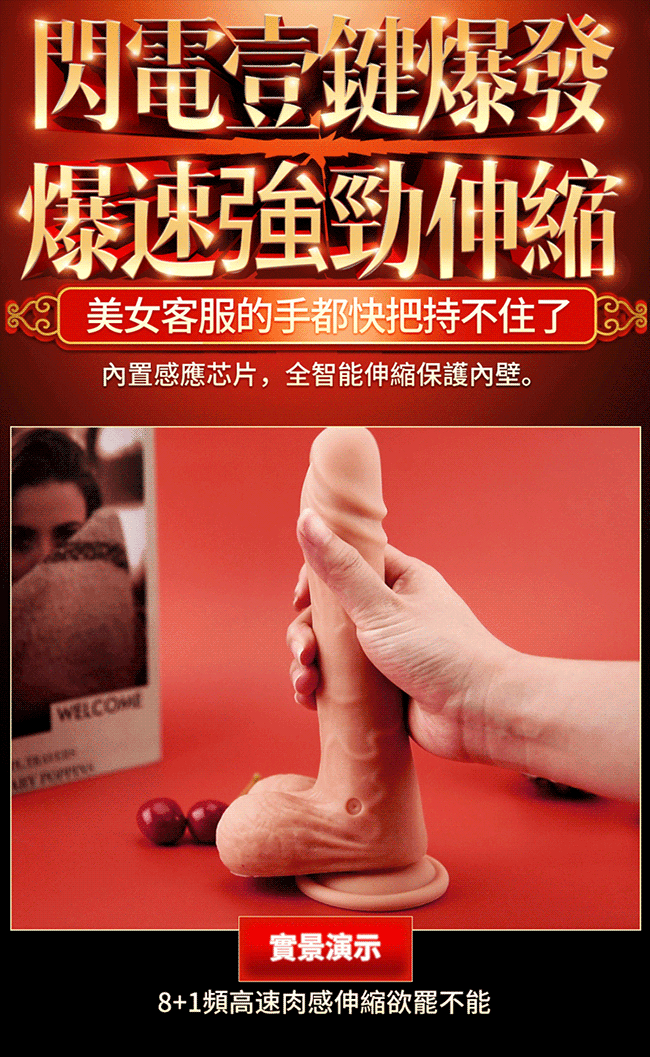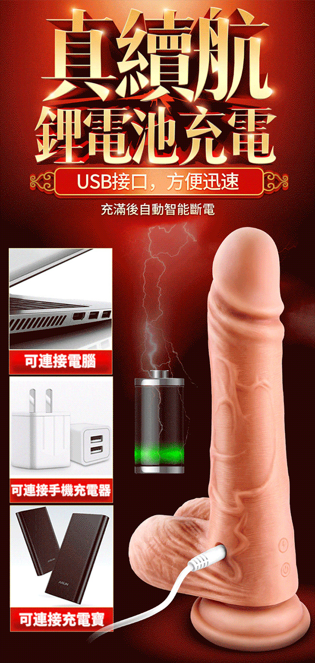 ■尺寸:大小詳如圖片標示 ■材質:矽膠、ABS ■電源:直插式USB充電 ■特色:8段伸縮抽插變頻、一鍵爆發模式、智能加溫、防水設計