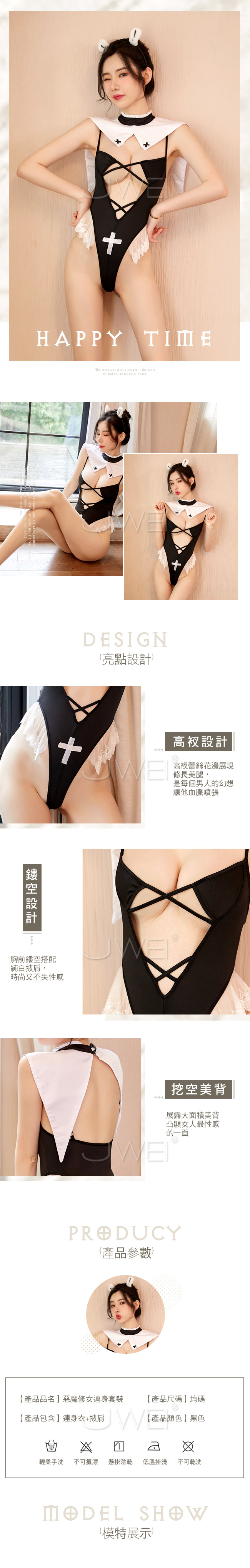 ◇◆迷情修女.高衩連身鏤空制服套裝二件組◆◇