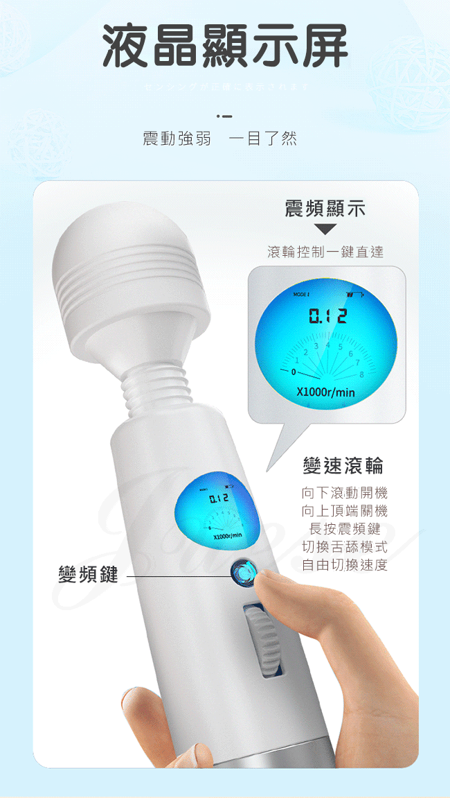 ►您現在的位置:首頁>颶風舌舔棒.9速7頻液晶顯示震動AV按摩棒