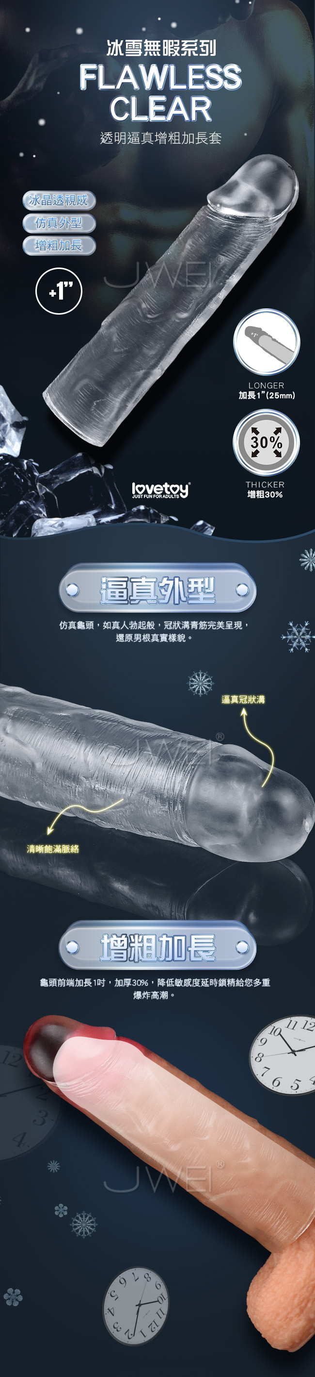 | Lovetoy.Flawless Clear冰雪無暇系列完美無瑕性愛晶透加長套-加1吋