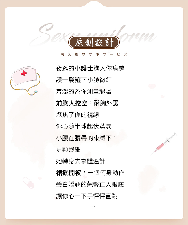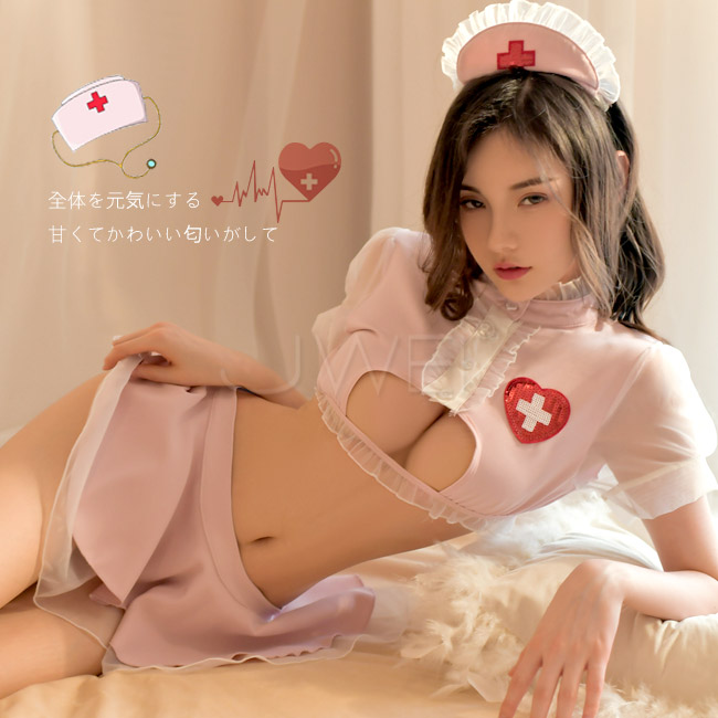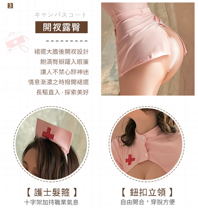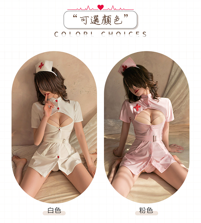 ►您現在的位置:首頁>護士角色扮演服!立領挖空露乳修身束腰後開衩裙襬四件式套裝﹝粉﹞