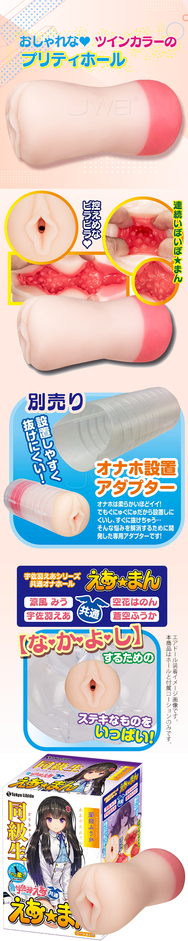 【同級生ふうか】ちゃんと【なかよし】するためのおしゃれなツインカラーのプリティホール♪控え目なラビアにキツキツの入り口から初心なピンク色の秘部がのぞく。恥ずかしい内部は気持ちいい連続いぼいぼまん♪別売りの「オナホ設置アダプター」対応で同級生シリーズはもちろん【宇佐羽えあ】にも対応!あなたの【えあドール】とのスキンシップに最適なアイテムです!もちろん単独使用もぷるっぷるの感触が味わえます!