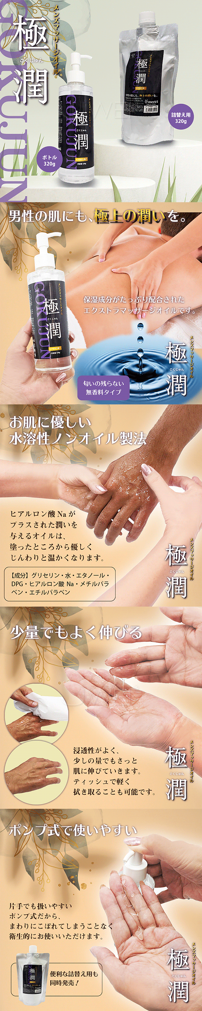 | 日本原裝進口NPG.メンズエステマッサージオイル「極潤・詰替え」極致滋潤水溶性按摩油補充包 320g