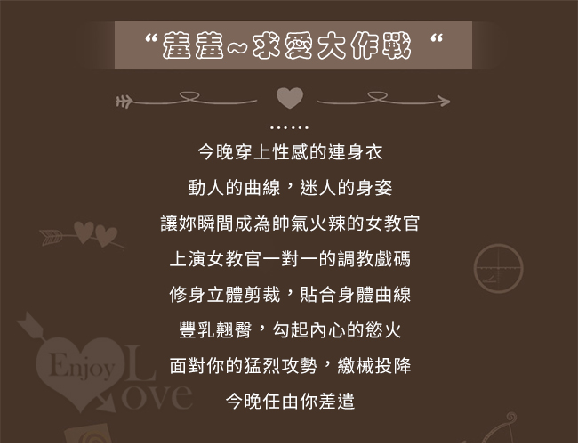 ►您現在的位置:首頁>教官角色扮演服!獨立翻領蕾絲V型低胸雙排金釦連身衣三件組﹝黑﹞