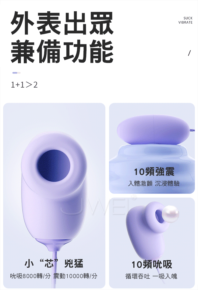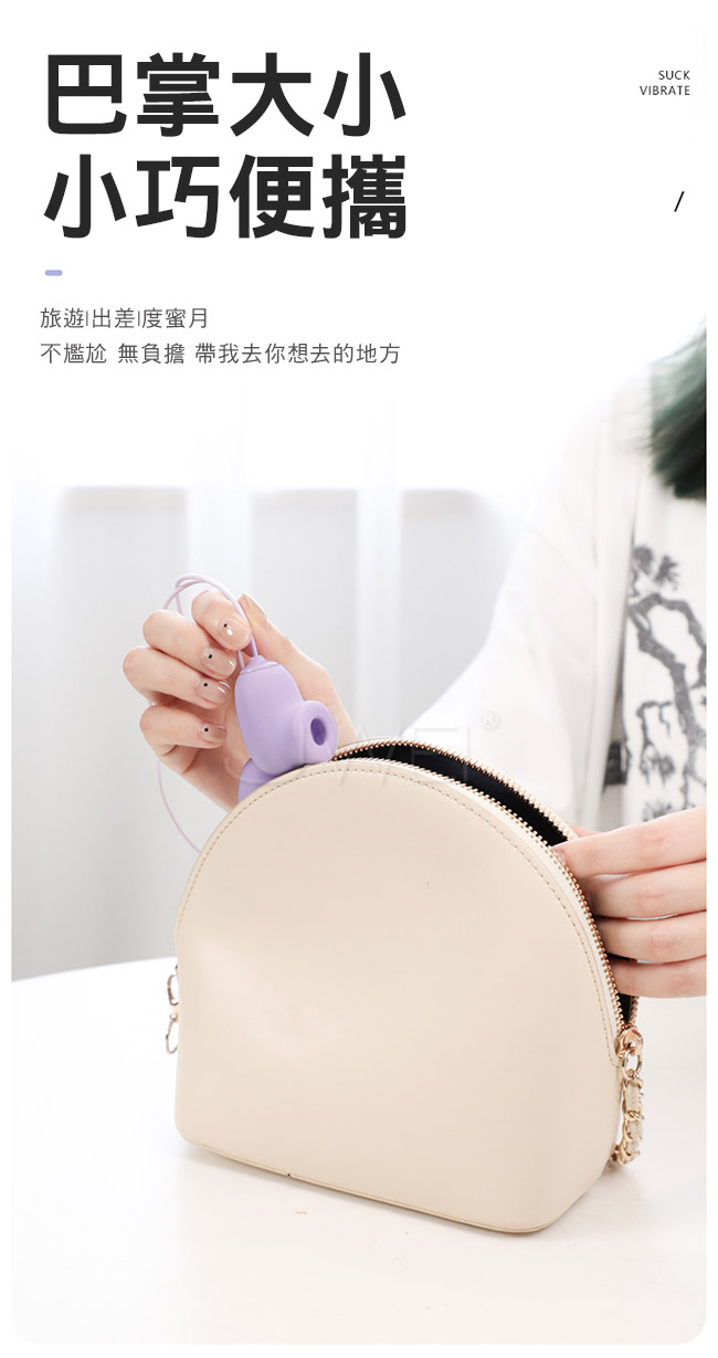 內外同潮,洶湧快感,1+1>2的快樂;深吻吮吸C點像男友般呵護大口徑吮吸口,精準裹 含豆豆,聲波脈衝吮吸,身體瞬間被喚醒;強震入體一觸到位,將每分鐘10000次的激震 單元,置入較小的構造中;10頻震顫,多重震感,穿透級秒潮,激活每寸肌膚 刺激到腳 弓繃直;巴掌大小小巧便攜,旅遊、出差、度蜜月,不尷尬無負擔,帶我去你想去的地方