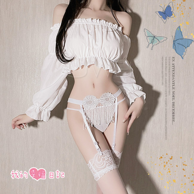 ►您現在的位置:首頁>情趣吊襪帶!蝴蝶結三角緹花開襠褲含網襪三件組﹝白﹞