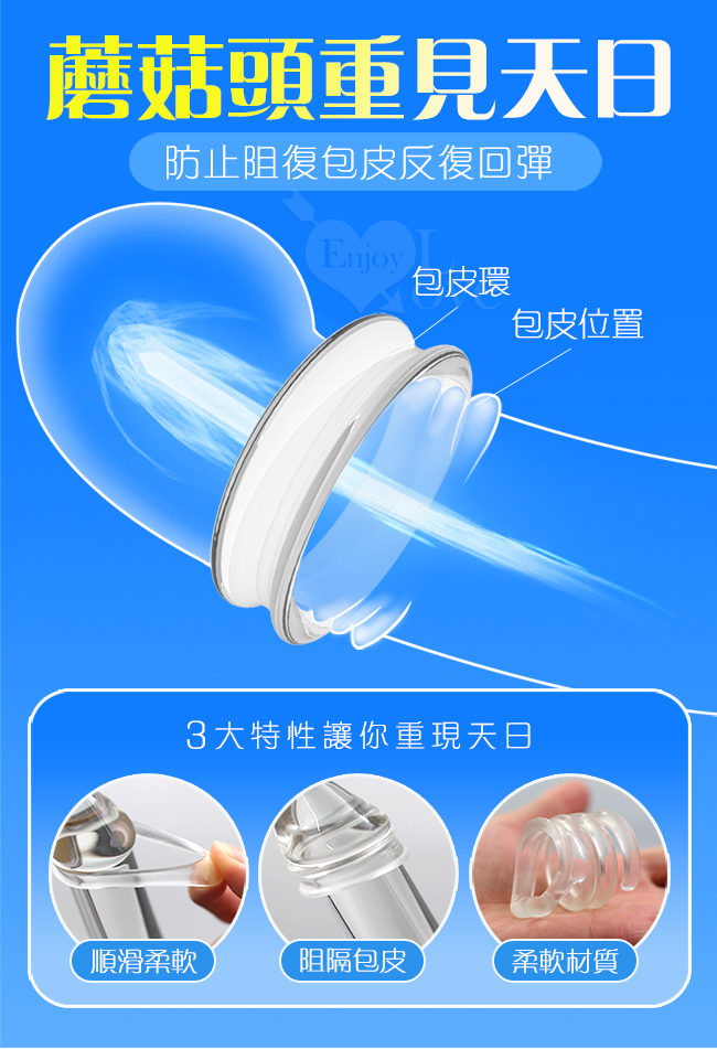 取悅 ‧ 双重阻力包皮阻復環4件套組﹝日/夜雙用型+螺紋狀阻隔﹞