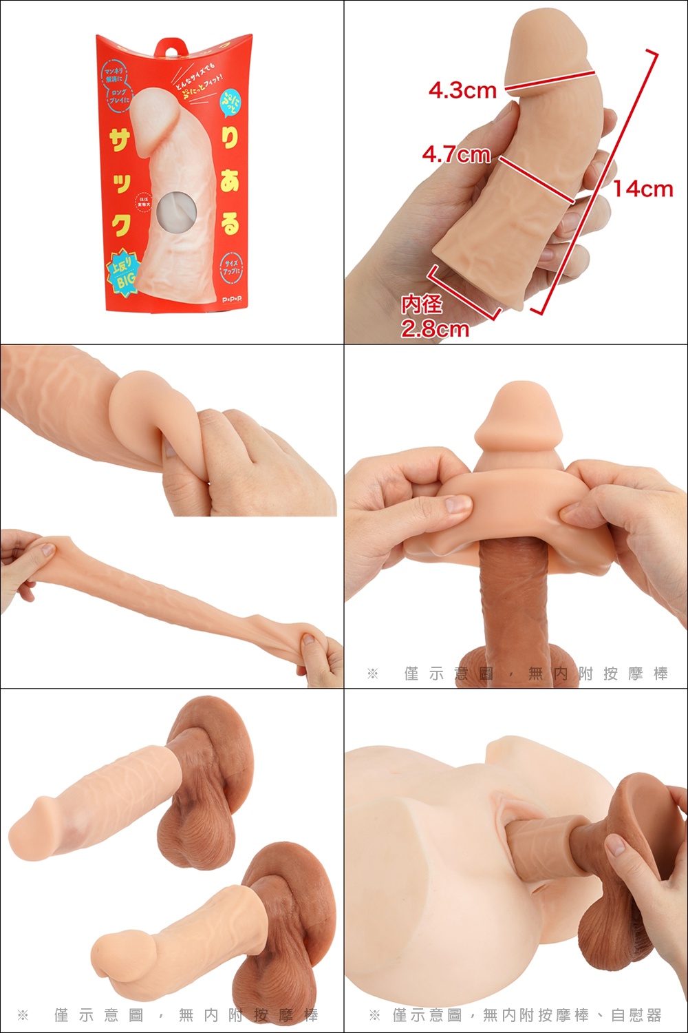 無論任何尺寸都Q彈貼合!追求真實感的逼真觸感和逼真外觀!可以用在自己身上,假陽具或是振動棒等玩具上,提供廣泛的升級,溫和貼合感的男根套!加大尺碼、增長PLAY的時間、擺脫千篇一律或是包皮退回來等等... Q彈貼合解決各種煩惱!審查編號:2301973