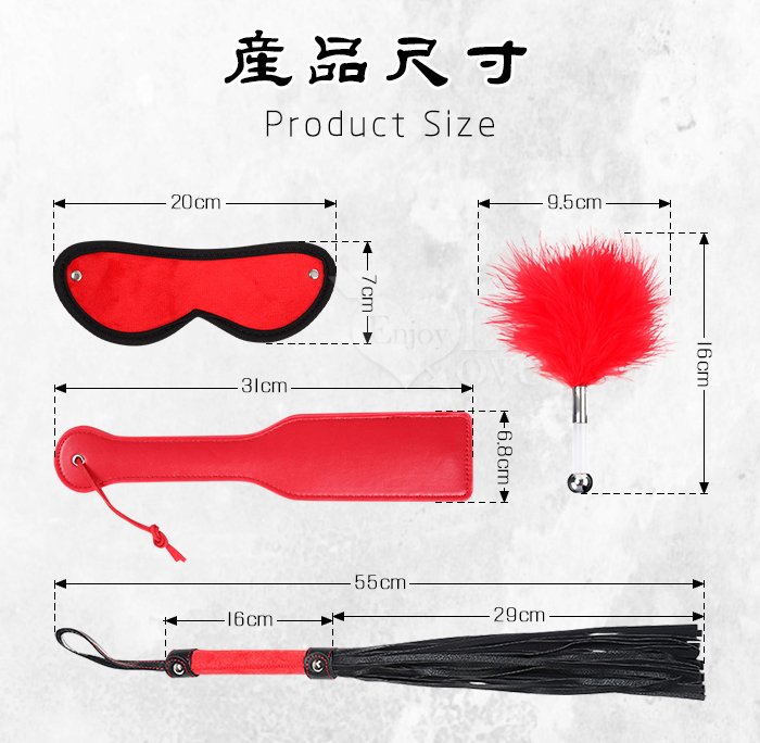 ►您現在的位置:首頁>【SM調教】調教散鞭/戲謔手拍/酥癢羽毛棒/調情眼罩 4件套組﹝紅﹞
