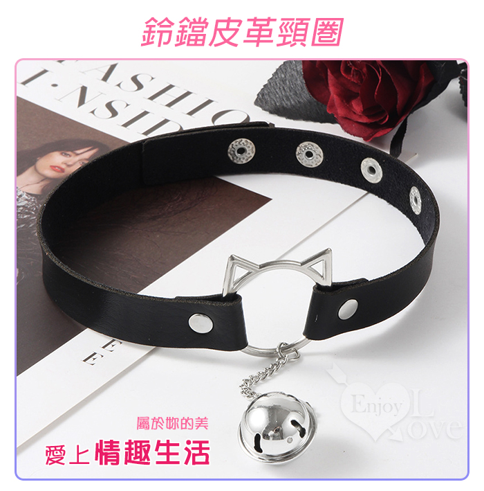 Kitty 化身喵喵 ‧ 帶鍊鈴鐺金屬鈕扣皮革頸圈