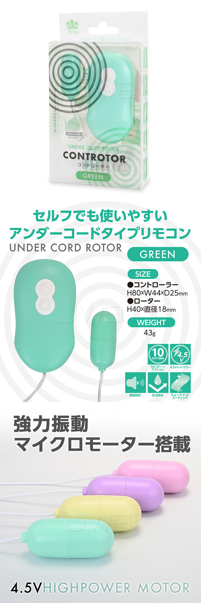 ►您現在的位置:首頁>日本原裝進口.CONTROTOR 啞光10 頻電動跳蛋-綠色
