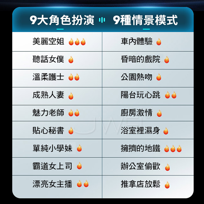 9+9狂浪聲吟,沉醉快感三重境,創新的角色與場景發聲,空服員、女 僕、車震等多種體驗,帶來立體式的第三重境界快感。黑洞吮吸技術 ,暢享深喉快感,創新的宮口收縮技術,利用空氣負壓吮吸,深處緊 緊吸住蘑菇頭,爽到拔不出來;緊嫩絲滑摸一下都興奮,柔軟Q彈,緊 緊包裹真舒服,紋理顆粒,宛如真人感受;創新的智慧雙螢幕,清晰 記錄你的 戰鬥時間,等級、速度;九浪黑洞的行程達到40mm真正從 頭擼到根,爽透每寸DD。