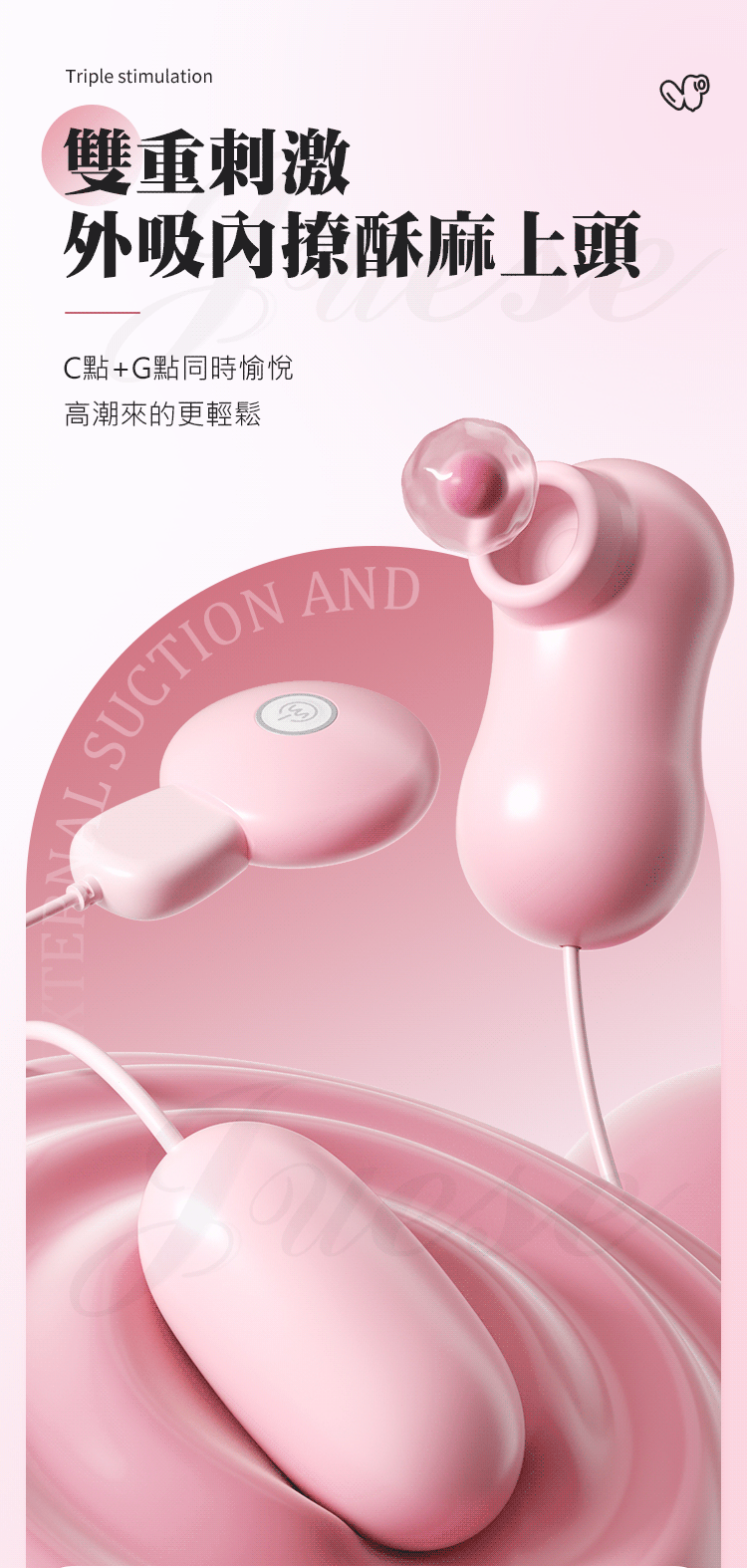 雙重刺激,外吸內撩酥麻上頭,C點+G點同時愉悅,高潮來的更輕鬆。