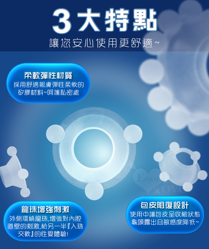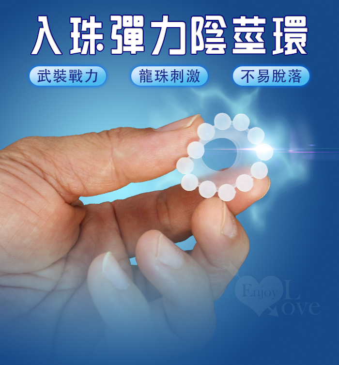 ►您現在的位置:首頁>Enjoy Love ‧ 猛男裝備 三入珠彈力陰莖環 刺激/增強/助性