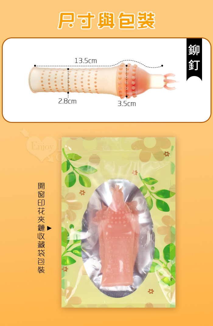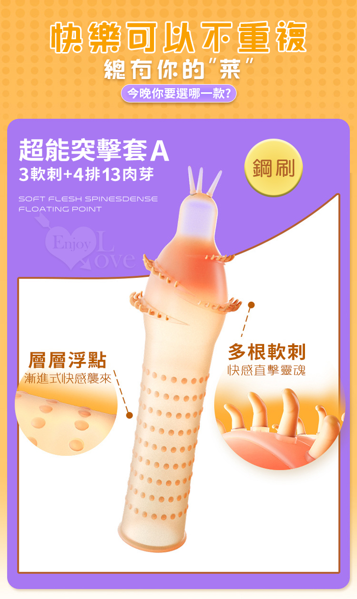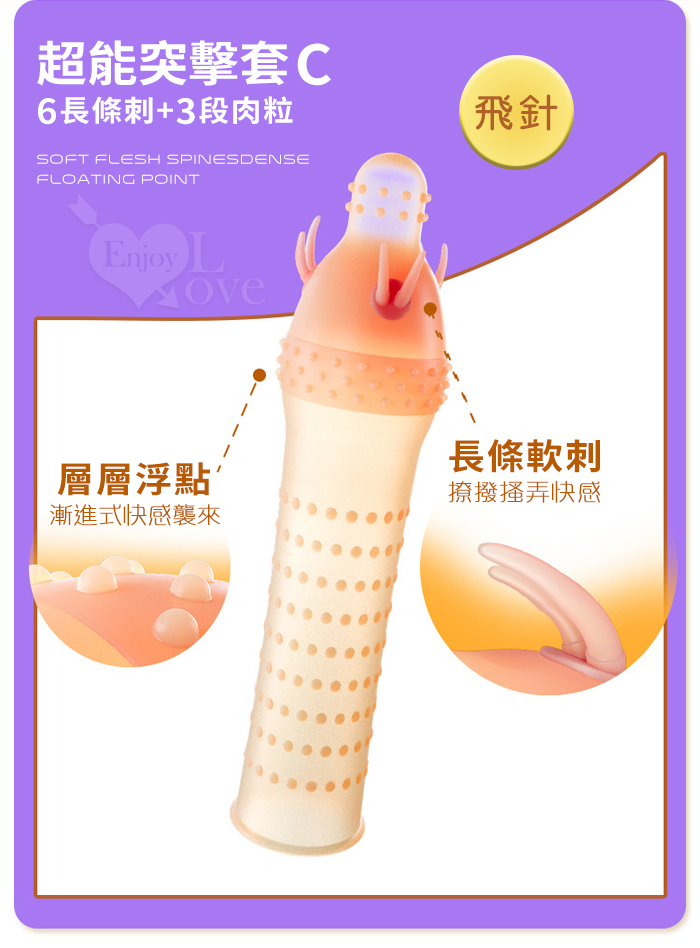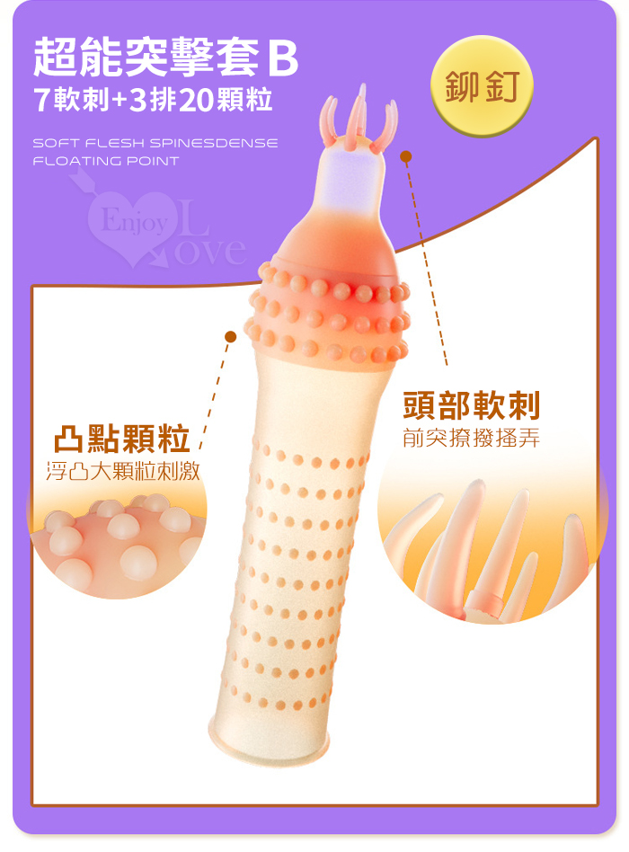 ►您現在的位置:首頁>Enjoy Love ‧ 超能突擊套B 7軟刺+3排20顆粒 輕薄裸入感浮點陰莖套﹝鉚釘﹞