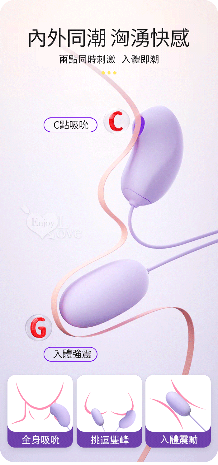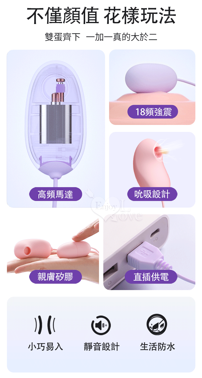 ►您現在的位置:首頁>ROSELEX 勞樂斯 ‧ 小魔圓吸雙蛋 USB直插供電款﹝吸震陰乳+入體快感+18頻調控+雙邊可獨立控制﹞粉