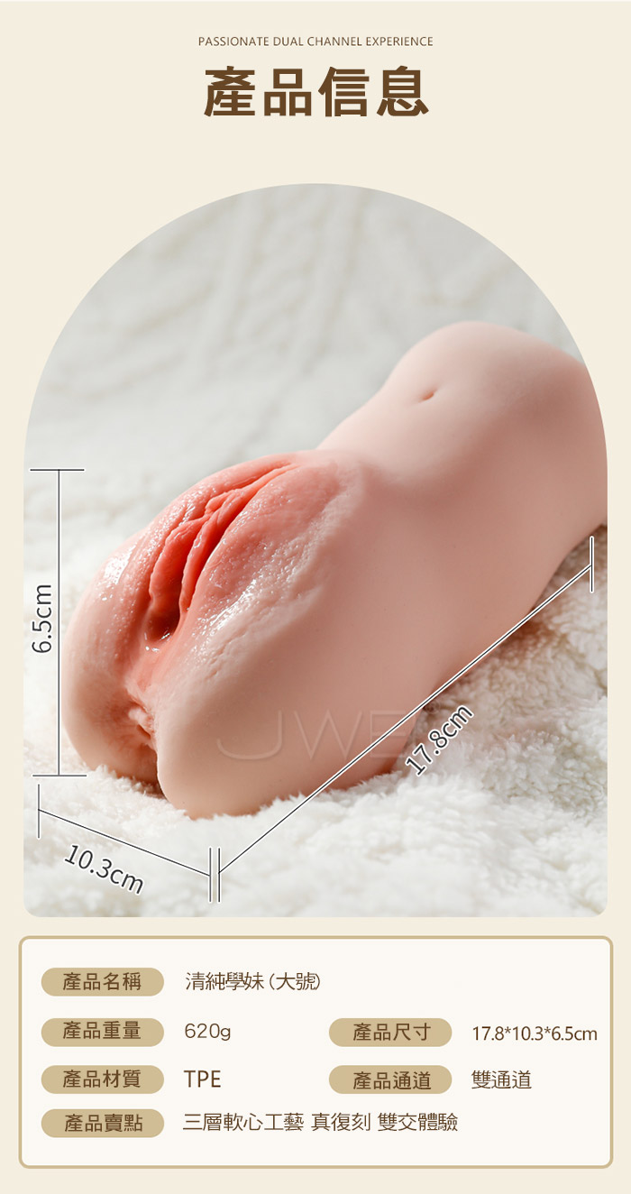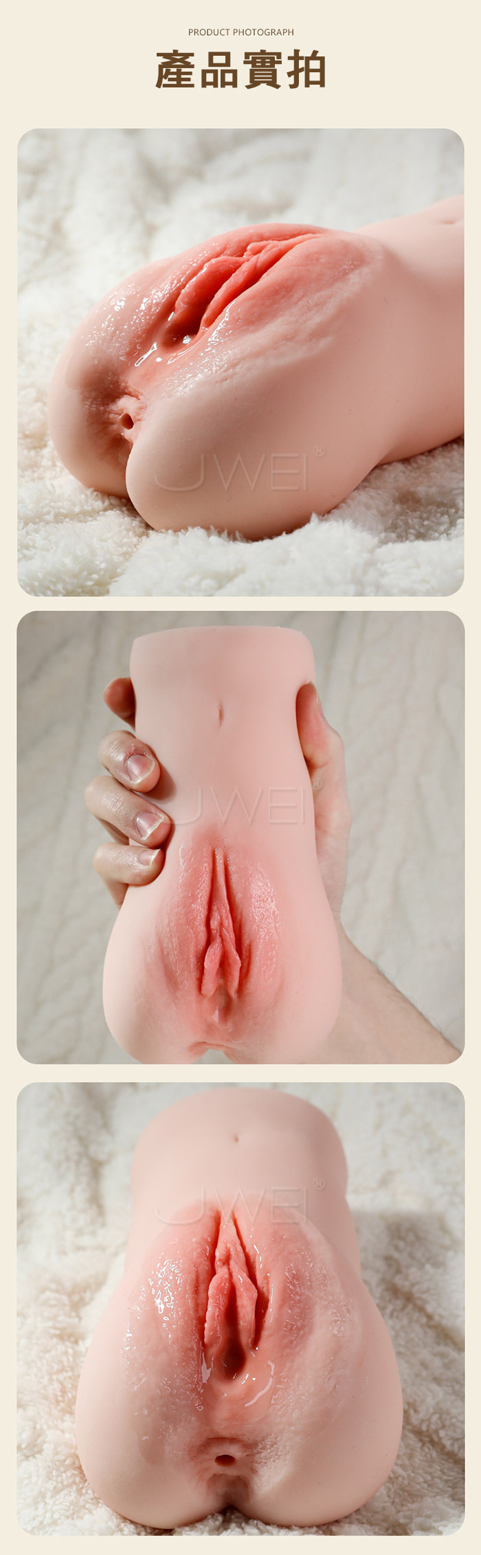 未曾體會過的體驗,仿真倒模,觸摸她的肌膚,她的嫩滑、柔軟,記憶中的美好;三層軟心工藝,她的柔 軟肉眼可見;仿真通道,私處溫潤包裹、肛門緊緻擠壓,激情雙交,肉感厚實,飽滿厚重柔軟隨你揉捏!