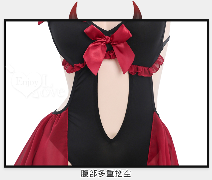 ►您現在的位置:首頁>小惡魔角色扮演服!細帶掛脖後裸背腹部挖空開襠連身裝兩件組