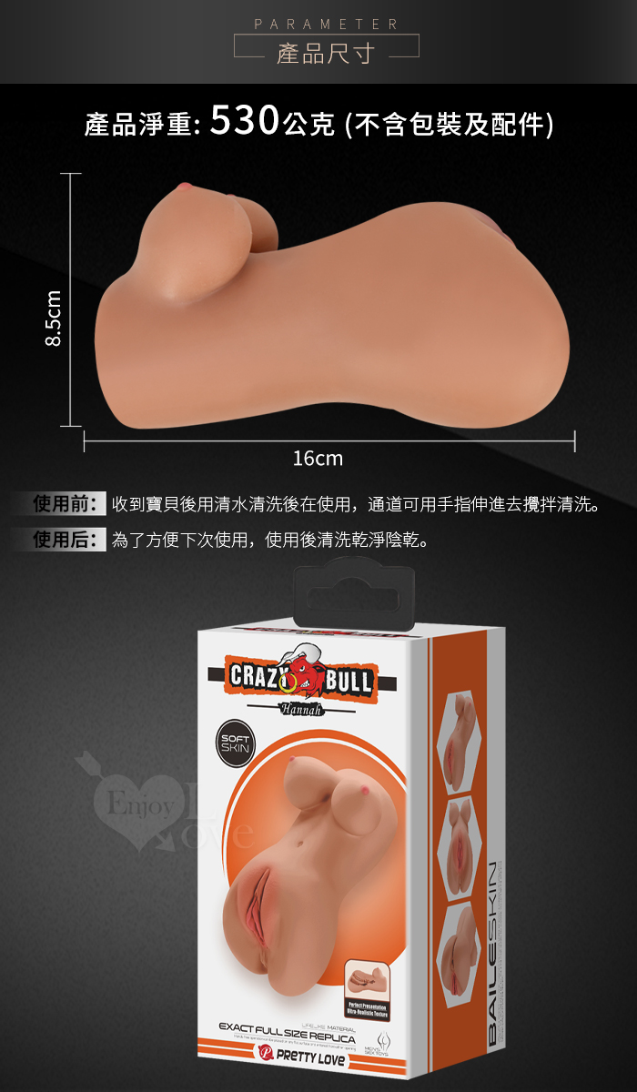 CARZY BULL 狂牛!漢娜 褐色肌乳陰肛多層肉摺凸粒刺激親膚彈感自慰器