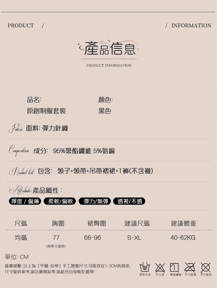 ■內容物:吊帶褶裙+領子+領帶+丁字褲(不含襪)