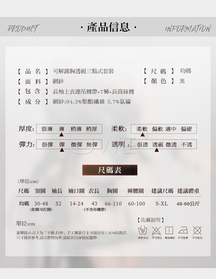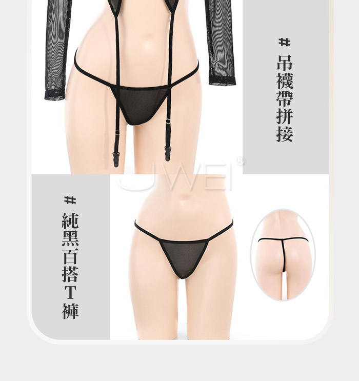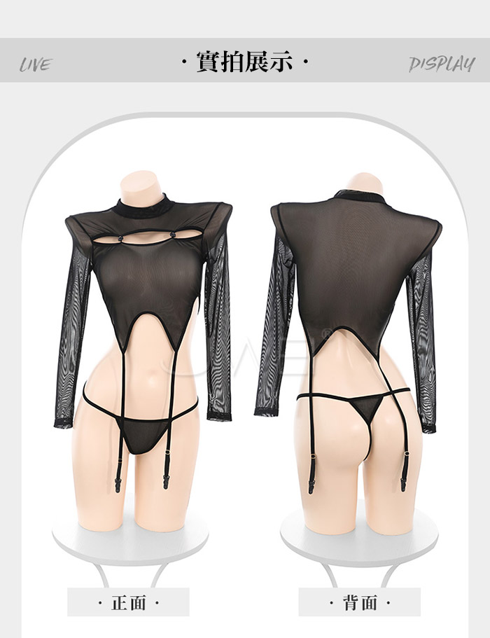 ■內容物:長袖上衣連吊襪帶+T褲+長筒絲襪