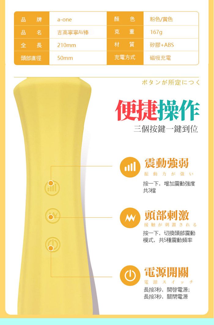 ■特色: 3種震動強度、5種震動頻率、生活防水