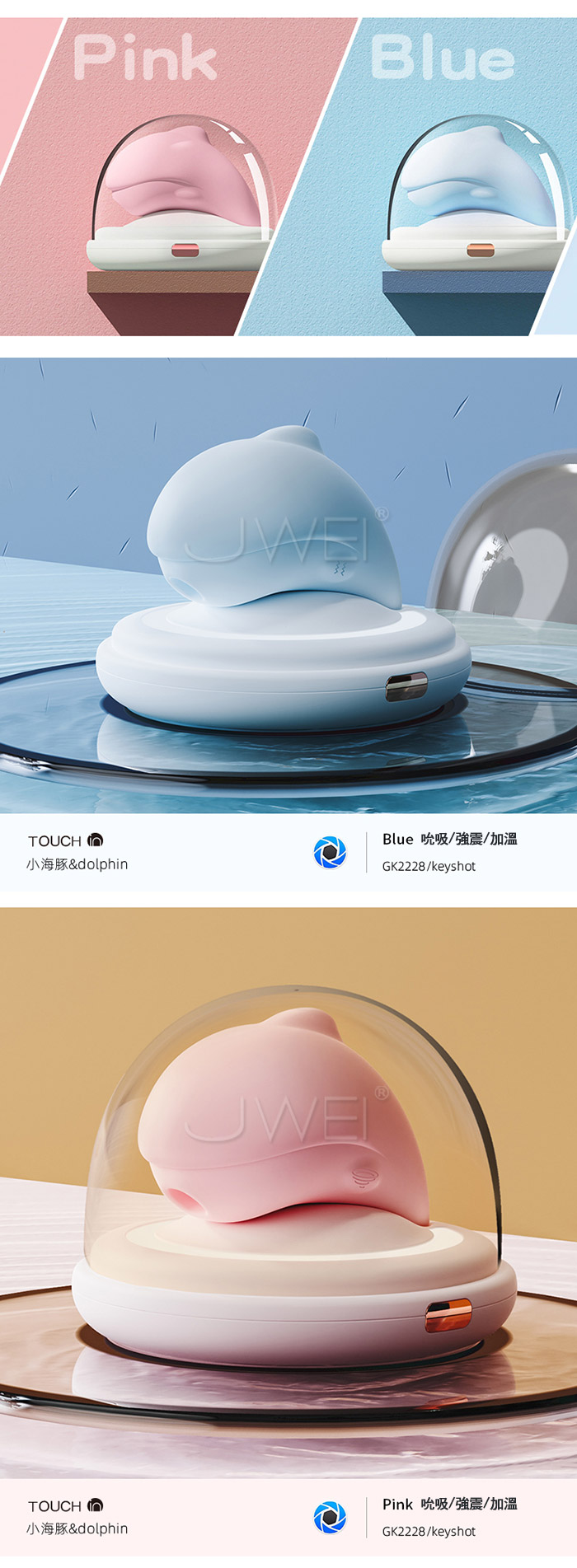 GALAKU.噴水小海豚&Dolphin 10頻吮吸強震 紫外線殺菌 智能恒溫升級版電動按摩器 (粉色)