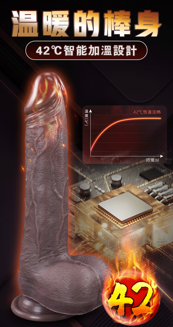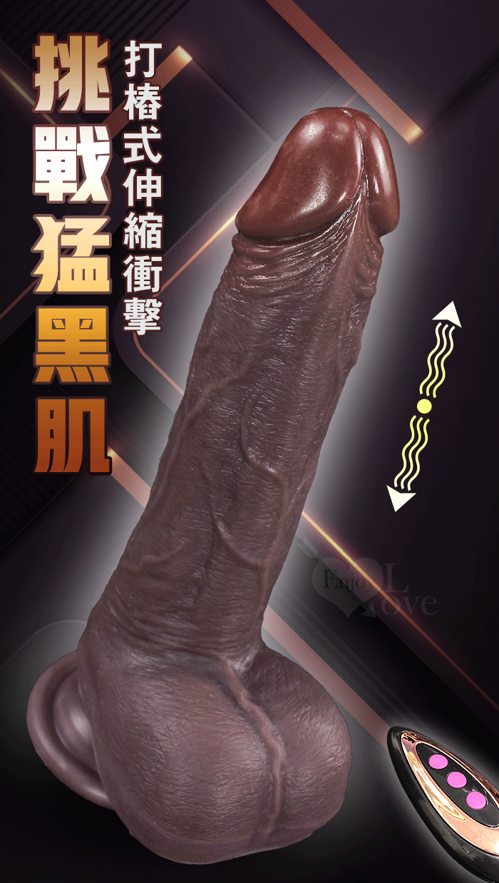 猛黑肌 ‧ 6X10伸縮衝撞+震動 吸盤逼真肉感陽具-小號﹝無線遙控/智能加溫/USB磁吸充電﹞