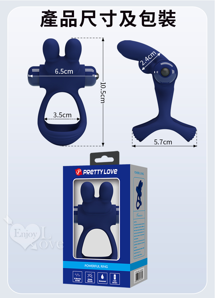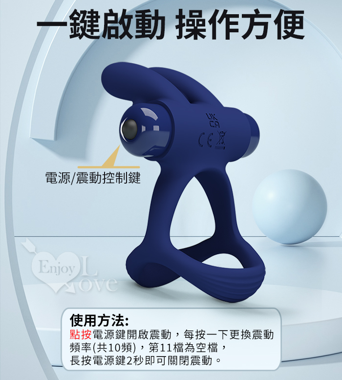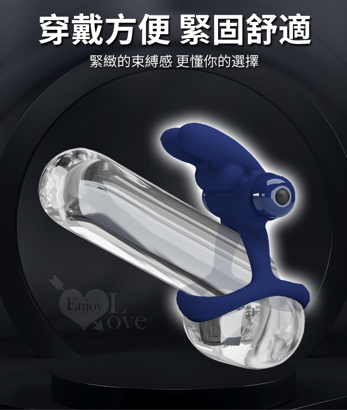 派蒂菈 ‧ 熱情雙耳兔 震動鎖精刺激陰蒂雙套環﹝10頻強震+雙環固精+激顫陰蒂+舒適硅膠﹞湛藍