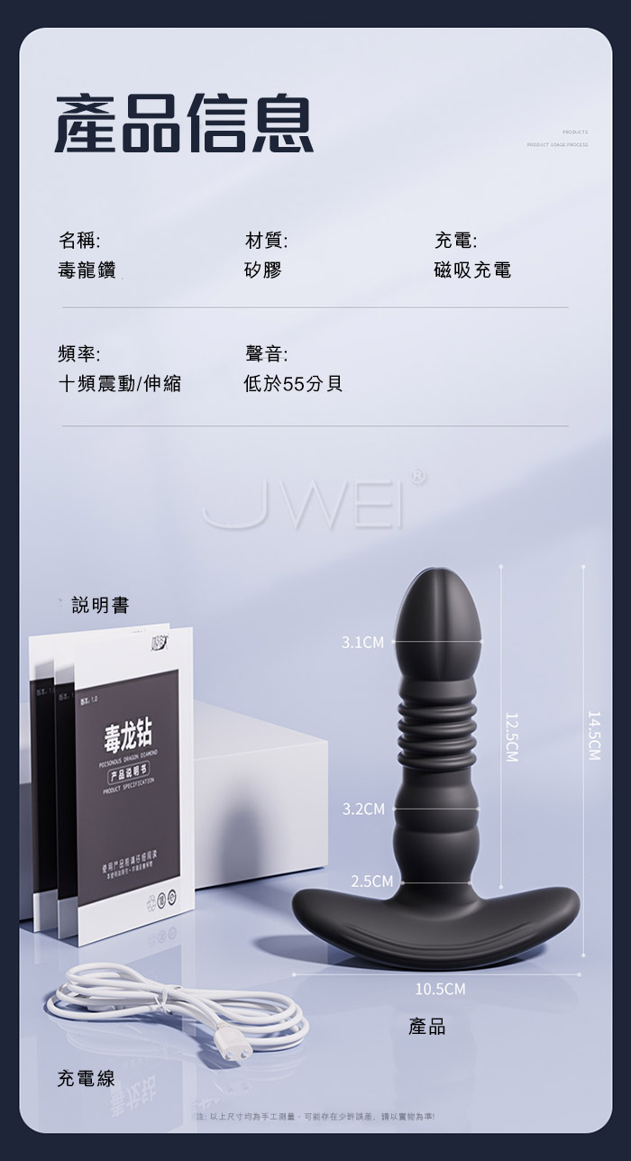►您現在的位置:首頁>姬欲 毒龍鑽II.10頻酥麻強震伸縮衝撞異地遙控肛塞